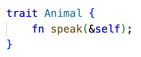 Then we implement the trait for these classes. If Animal