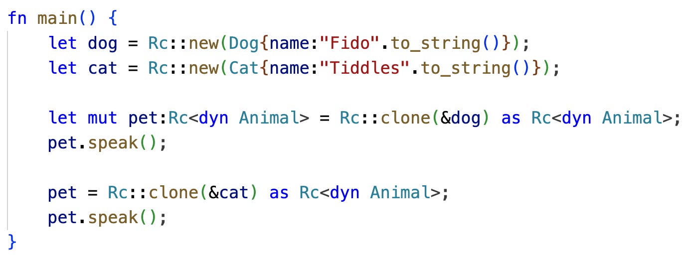 It is then possible, in Rust, to do dynamic dispatch, even just using ordinary references.